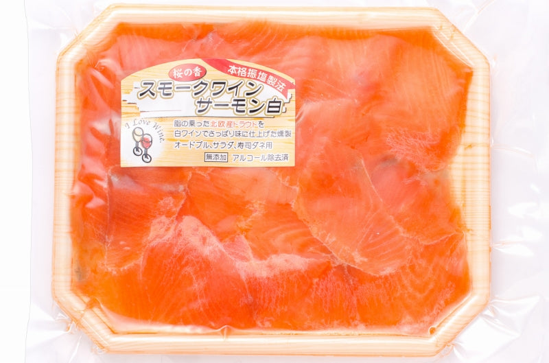 【送料無料】スモークサーモン スモークワインサーモン白 100g×20パック 合計 2kg 本格振塩製法!桜の香。国際線機内食エグゼクティブクラスでも採用【サーモン スモーク 鮭 トロサーモン 刺身 オードブル サラダ 燻製 料理 ギフト】